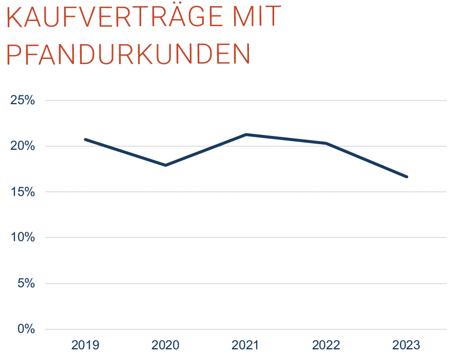 5. BarzahlerInnen unterwegs: Eine Spezialauswertung der Verbücherungen zeigt, dass im letzten Jahr der Anteil der Kaufverträge mit hinterlegter Pfandurkunde zur gleichen Tagebuchzahl zurückgegangen ist. Besonders hoch ist der Anteil an BarzahlerInnen bei Anlegerwohnungen unter 400.000 Euro sowie bei Eigennutzern über 1 Million Projekte in diesen Segmenten verwerten weiterhin gut.