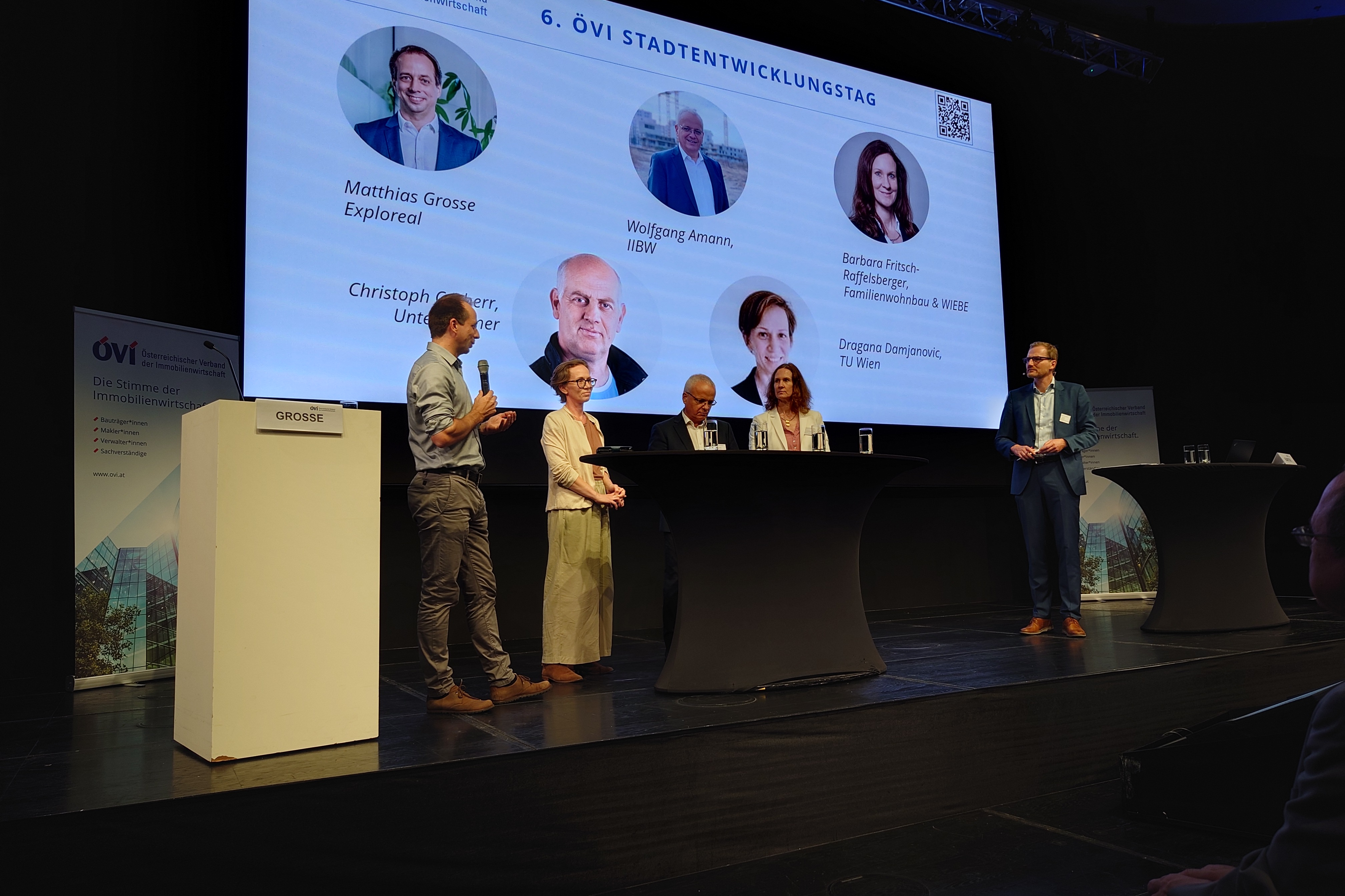Am Dienstag, den 26.9. fand der 6. ÖVI Stadtentwicklungstag in der Grand Hall des Erste Campus statt, bei dem unser Geschäftsführer Matthias Grosse vor großem Publikum im Programmpunkt „Fünf Jahre Widmungskategorie geförderter Wohnbau – Erfahrungen mit den 2018 eingeführten Maßnahmen“ die aktuelle Marktsituation und die Analyse der Grundkostenentwicklung von Bauträgerprojekten präsentierte und anschließend an einer Paneldiskussion teilnahm.