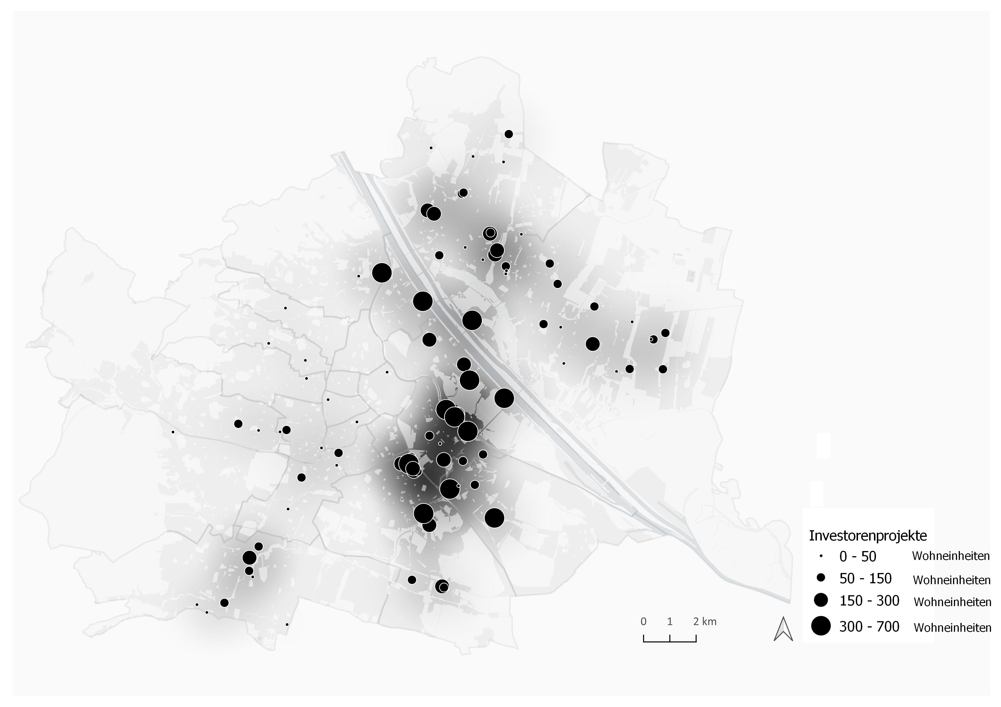 - Räumliche Schwerpunkte finanzialisierter Wohnungsproduktion sind Neubaugebiete mit größeren Flächenreserven (da große Projekte) sowie ganz generell bekannte Leuchtturmprojekte (am Wasser), siehe Karte oben