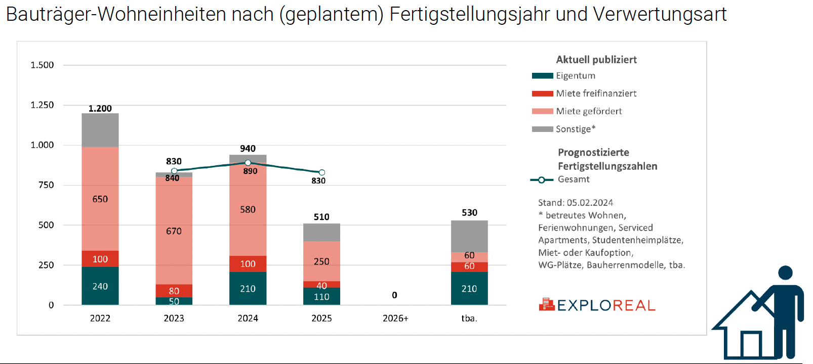 - Im Burgenland wurden 2023 rund 800 Wohneinheiten fertiggestellt und damit deutlich weniger als noch im Jahr zuvor. 2024 werden wieder etwas mehr Fertigstellungen prognostiziert (890) und großteils im geförderten Mietsegment errichtet.