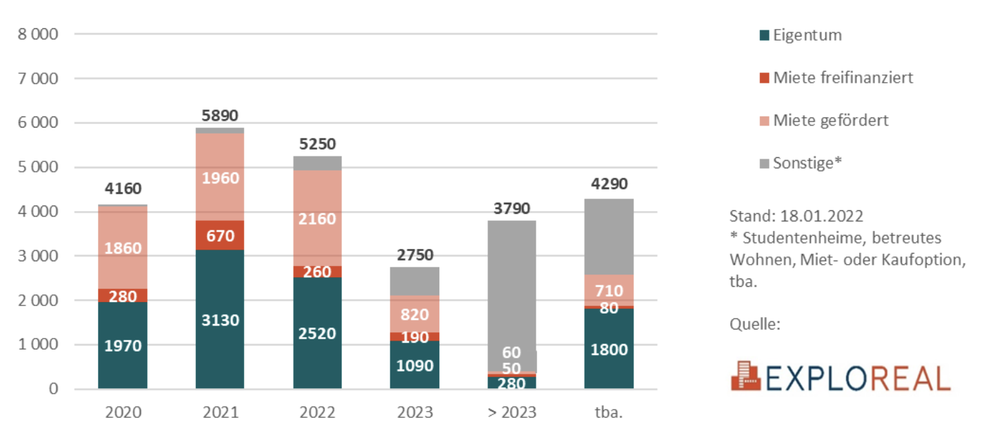 - In Oberösterreich werden heuer rund 5.250 Wohneinheiten fertiggestellt, die Fertigstellungen im Jahr 2022 werden somit geringfügig unter jenen von 2021 liegen